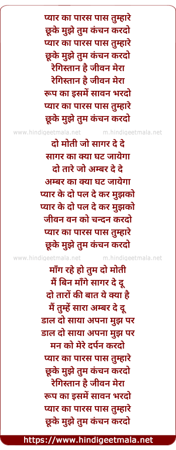 Lyrics of Pyar Ka Paras Paas Tumhare - प्यार का पारस पास तुम्हारे