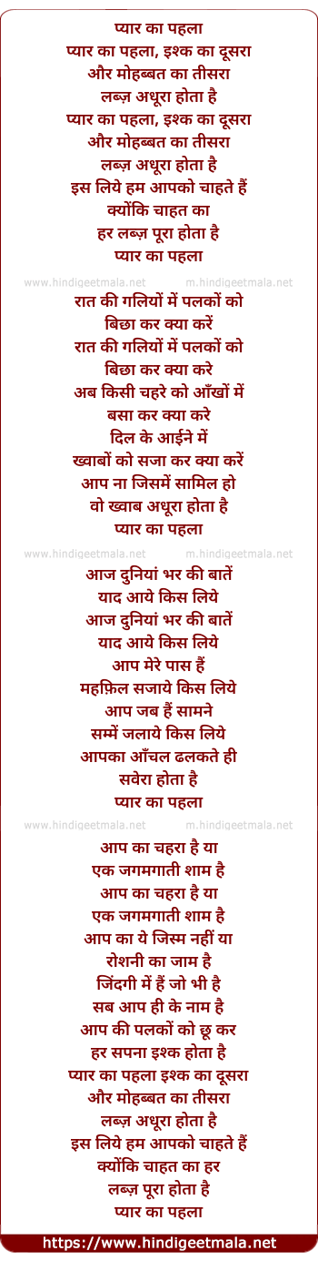 Lyrics of Pyar Ka Pehla Ishq Ka Doosra - प्यार का पहला