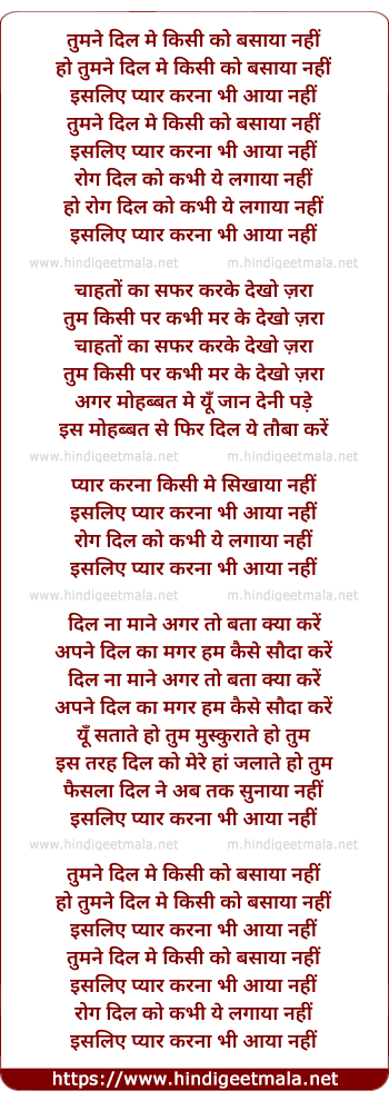 tumne dil me kisi ko basaya nahi
