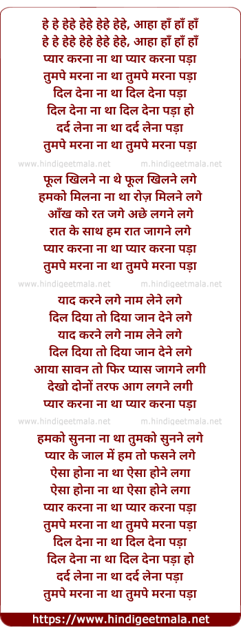 Lyrics of Pyar Karna Na Tha, Pyar Karna Pada (Male) - हे हे हेहे हेहे हेहे हेहे, आहा हाँ हाँ हाँ