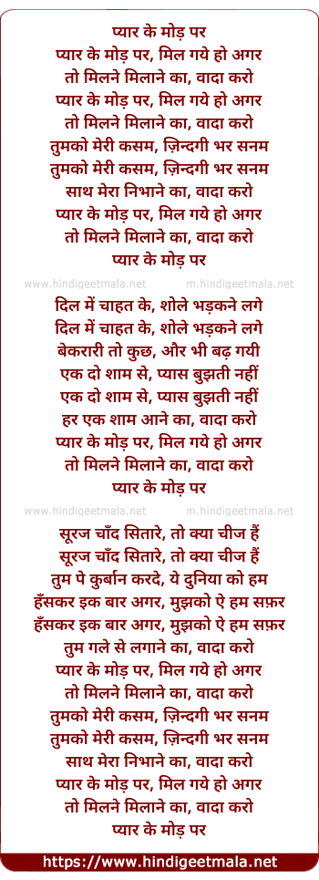 Lyrics of Pyar Ke Mod Par Mil Gaye Ho Agar - प्यार के मोड़ पर मिल गये हो अगर