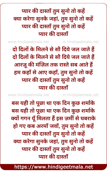Lyrics of Pyar Ki Dastan Tum Suno To Kahe - प्यार की दास्ताँ तुम सुनो तो कहें
