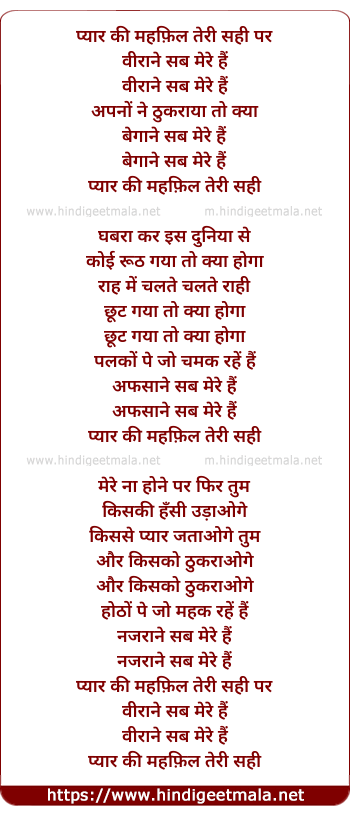 Lyrics of Pyar Ki Mahfil Teri Sahi - प्यार की महफ़िल तेरी सही पर