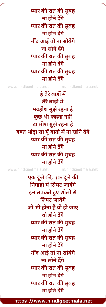 Lyrics of Pyar Ki Raat Ki Subah - प्यार की रात की सुबह