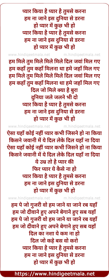 Lyrics of Pyar Kiya Hai Pyar Hai Tumse Karna - प्यार किया है प्यार है तुमसे करना