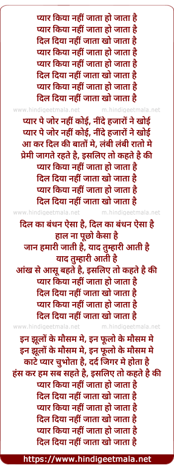 Lyrics of Pyar Kiya Nahi Jata Ho Jata Hai - प्यार किया नहीं जाता हो जाता है