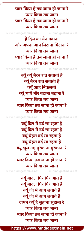 Lyrics of Pyar Kiya Tab Jana Re - प्यार किया है तब जाना हो जाना रे