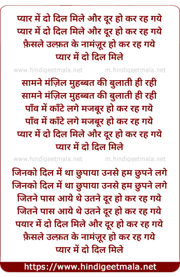 Lyrics of Pyar Me Do Dil Mile Aur - प्यार में दो दिल मिले और