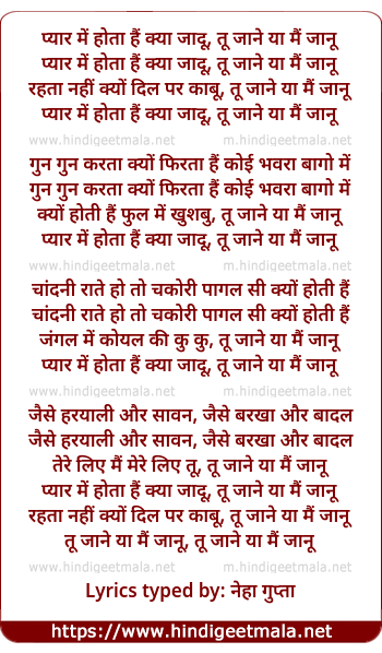 Lyrics of Pyar Me Hota Hai Kya Jadu - प्यार में होता हैं क्या जादू