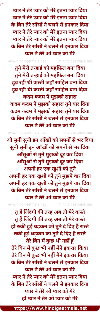 Lyrics of Pyar Ne Tere - प्यार ने तेरे