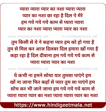 Lyrics of Pyara Pyara Pyar Ka Nasha - प्यारा प्यारा प्यार का नशा