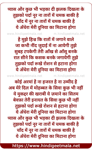 Lyrics of Pyas Kuch Aur Bhi Bhadka Di Jhalak Dikhla Ke - प्यास और कुछ भी भड़का दी झलक दिखला के