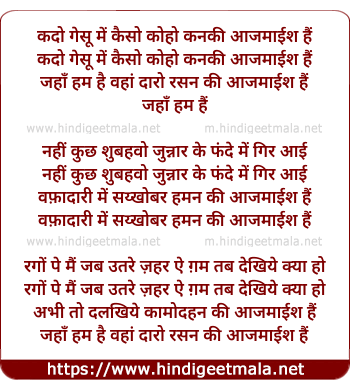 Lyrics of Qad O Gesoo - कदो गेसू में कैसो कोहो कनकी आजमाईश हैं