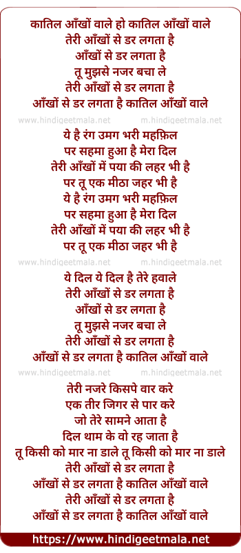 Lyrics of Qatil Aankho Wale Teri Aankho Se - कातिल आँखों वाले तेरी आँखों से