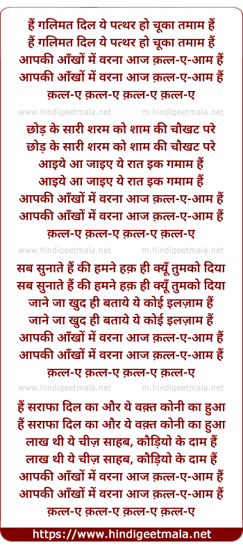 Lyrics of Qatl-E-Aam - क़त्ल-ए-आम