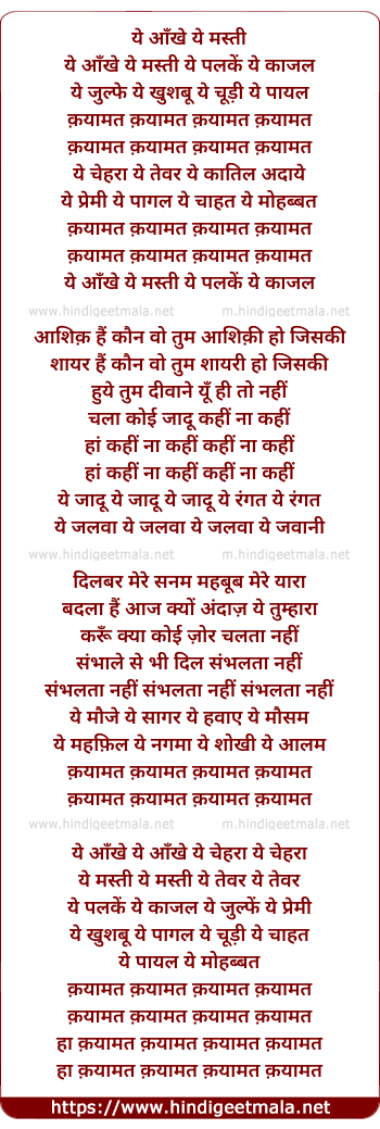 Lyrics of Qayamat Qayamat Qayamat - क़यामत क़यामत क़यामत