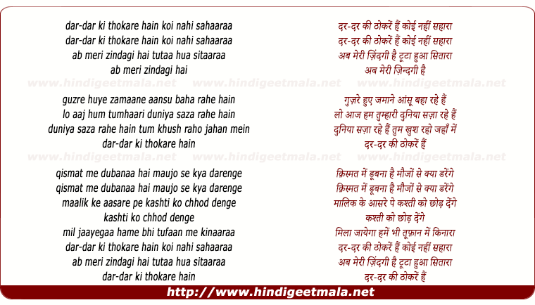 Lyrics of Qismat Me, Dar Dar Kii Thokaren Hain - किस्मत में, दर दर की ठोकरें हैं
