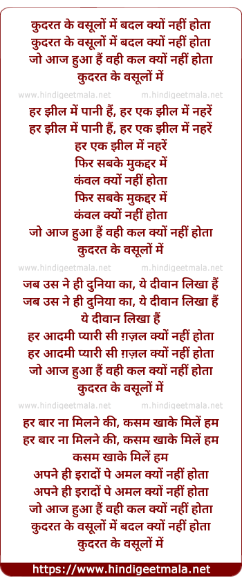 Lyrics of Qudrat Ke Usoolo Me - कुदरत के वसूलों में बदल क्यों नहीं होता
