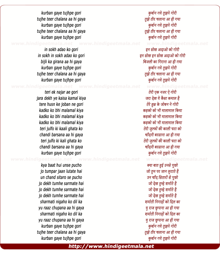 Lyrics of Qurban Gaye Tujh Pe Gori - कुर्बान गये तुझपे गोरी