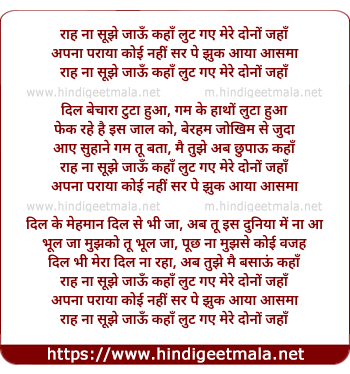 Lyrics of Rah Na Sujhe Jau Kaha - राह ना सूझे जाऊँ कहाँ