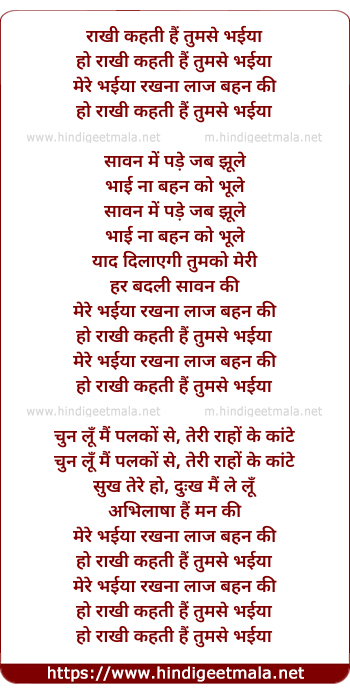 Lyrics of Raakhi Kehti Hai Tumse Bhaiya - राखी कहती हैं तुमसे भैया
