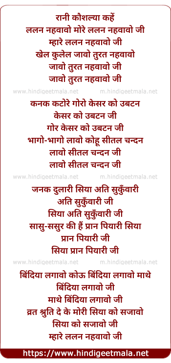Lyrics of Rani Kaushalya Kahe Lalan Nahawawo More - रानी कौशल्या कहें ललन नहावावो मोरे