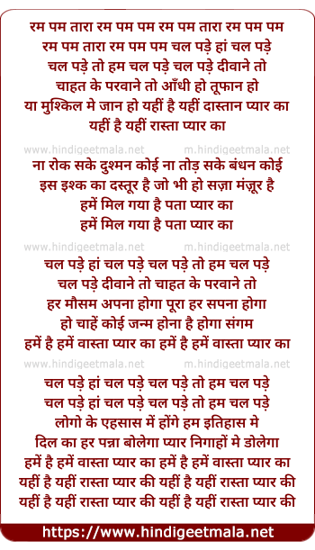 Lyrics of Yahi Hai Yahi Rasta Pyar Ka - यहीं है यहीं रास्ता प्यार का