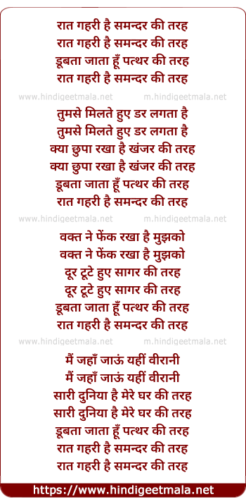 Lyrics of Raat Gahari Hai - रात गहरी है समन्दर की तरह