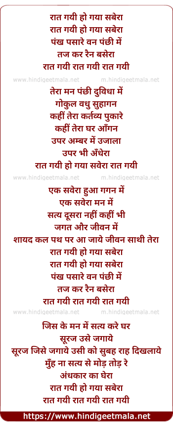 Lyrics of Raat Gayi Ho Gaya Sawera - रात गयी हो गया सवेरा
