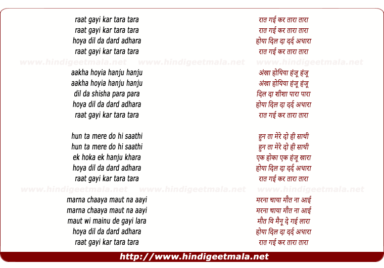 Comments for lyrics of song "Raat Gayi Kar Tara"