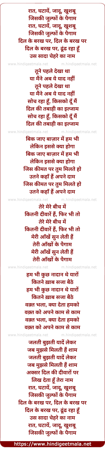 Lyrics of Raat Ghataye Khushbu - रात घटायें खुशबू