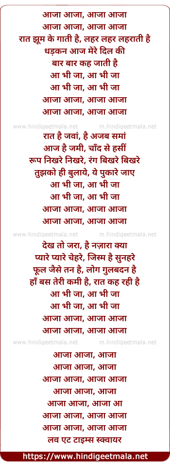aaja aaja, aaja aaja