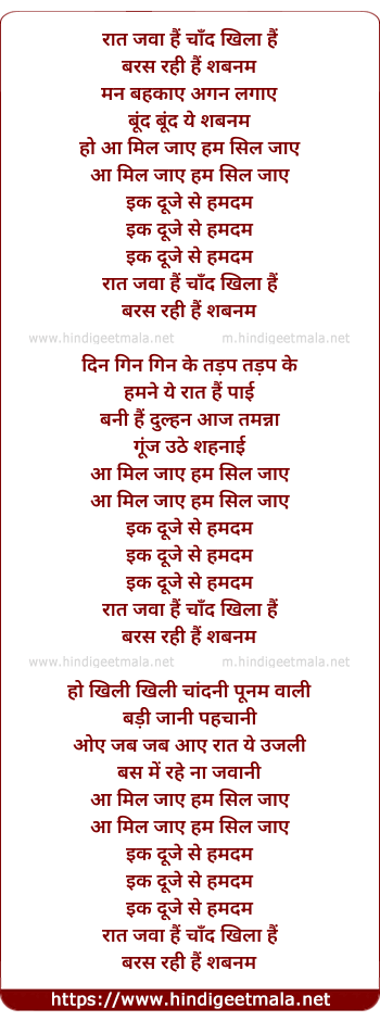 Lyrics of Raat Jawaan Hai Chand Khila Hai - रात जवा हैं चाँद खिला हैं