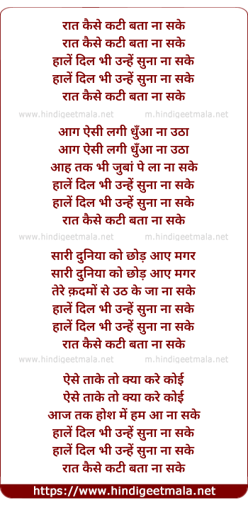 Lyrics of Raat Kaise Kati Bata Na Sake - रात कैसे कटी बता ना सके