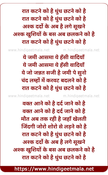 Lyrics of Raat Katne Ko Hai (Female) - रात कटने को है धुंध छटने को है