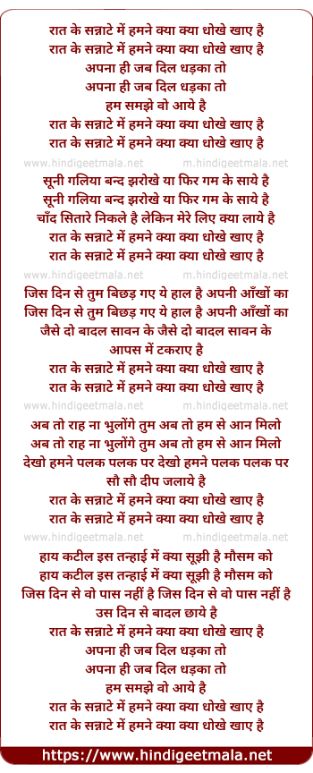 Lyrics of Raat Ke Sannate Me - रात के सन्नाटे में हमने क्या क्या धोखे खाए है