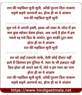 Lyrics of Raat Kee Mehfil Sunee Sunee - रात की महफ़िल सूनी सूनी