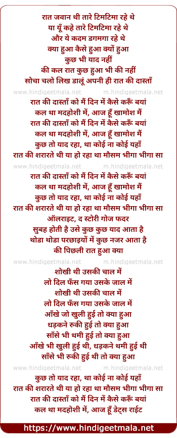 Lyrics of Raat Ki Dasta - रात जवान थी तारे टिमटिमा रहे थे