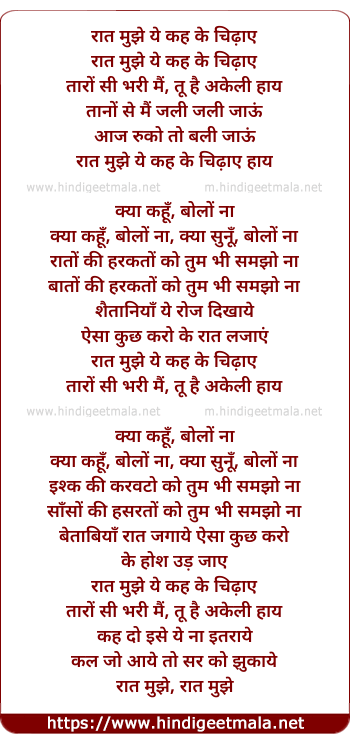 Lyrics of Raat Mujhe Yeh Keh Ke Chidaye - रात मुझे ये कह के चिढ़ाए