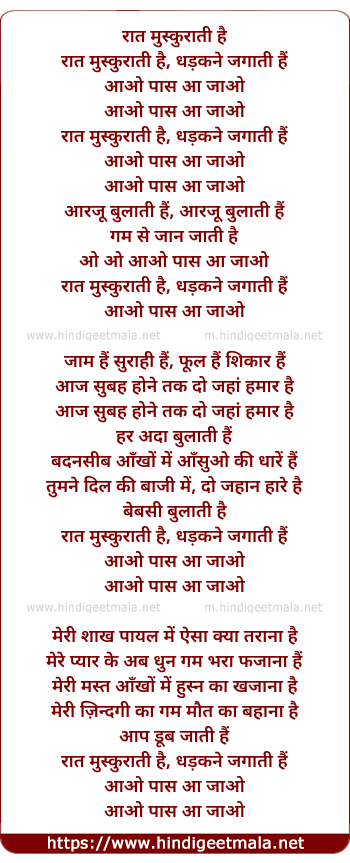 Lyrics of Raat Muskurati Hai Dhadkane Jagati Hai - रात मुस्कुराती है धड़कने जगाती हैं