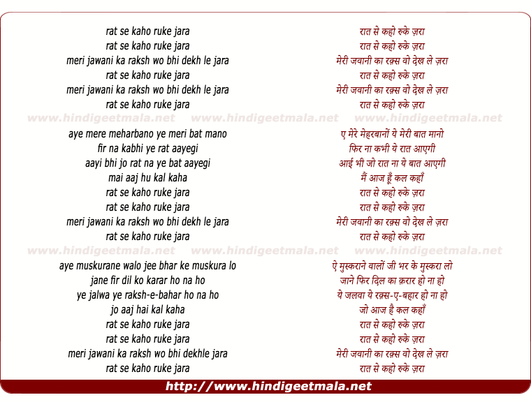 Lyrics of Raat Se Kaho Ruke Zara - रात से कहो रुके ज़रा