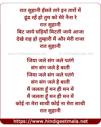 Lyrics of Rat Suhani Hanste Tare In Taro Me - रात सुहानी हँसते तारे इन तारों में