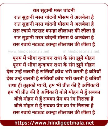 Lyrics of Raat Suhani Mast Chandni - रात सुहानी मस्त चांदनी
