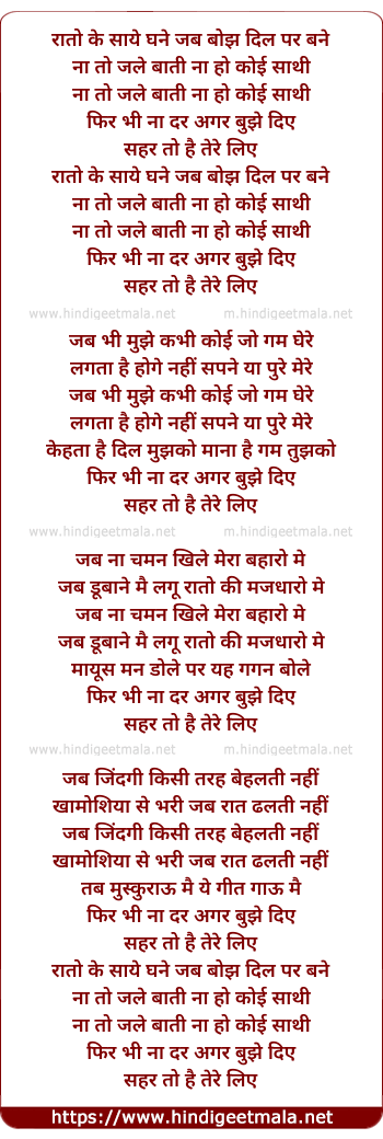 Lyrics of Raaton Ke Saaye Ghane Jab Bojh Dil Par Bane - रातो के साये घने जब बोझ दिल पर बने