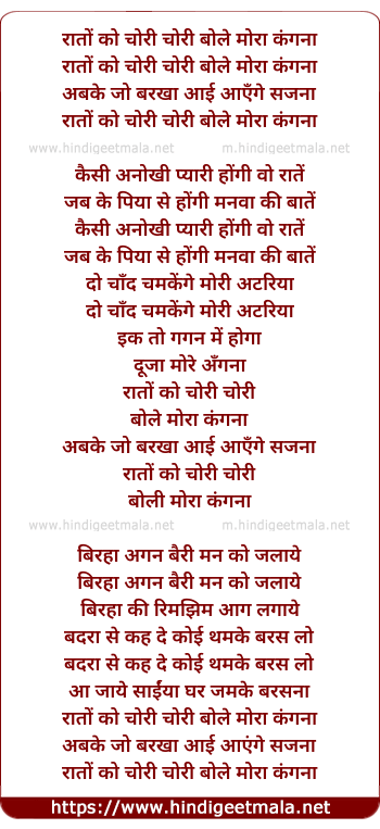 Lyrics of Raaton Ko Chori Chori - रातों को चोरी चोरी