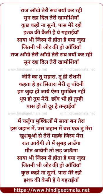 Lyrics of Raaz Aankhein Teri - राज आँखे तेरी