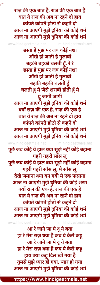 Lyrics of Raaz Ki Ek Bat Hai - राज़ की एक बात है