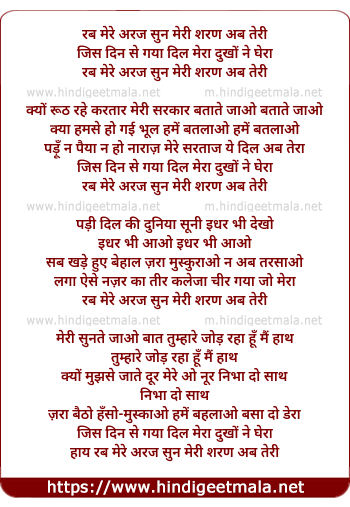 Lyrics of Rab Mere Araj Sun Meri - रब मेरे अरज सुन मेरी