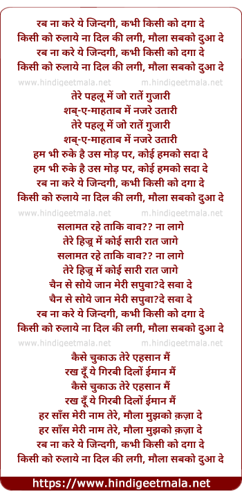 Lyrics of Rab Na Kare Ke Ye Jindagi - रब ना करे ये जिन्दगी