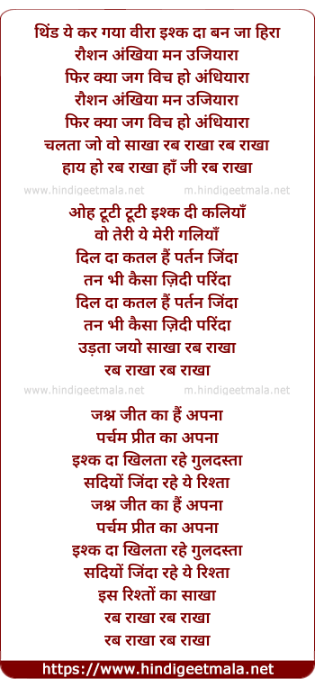 Lyrics of Rab Rakha Haye Re Rab Rakha - रब राखा हाय रे रब राखा